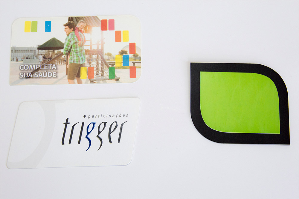 Ele pode ser impresso em papel convencional ou especial, diversos acabamentos como corte e formato especial, laminação fosca e plastificação impressão frente e verso, verniz localizado, relevo seco ou serigrafia, tintas especiais...